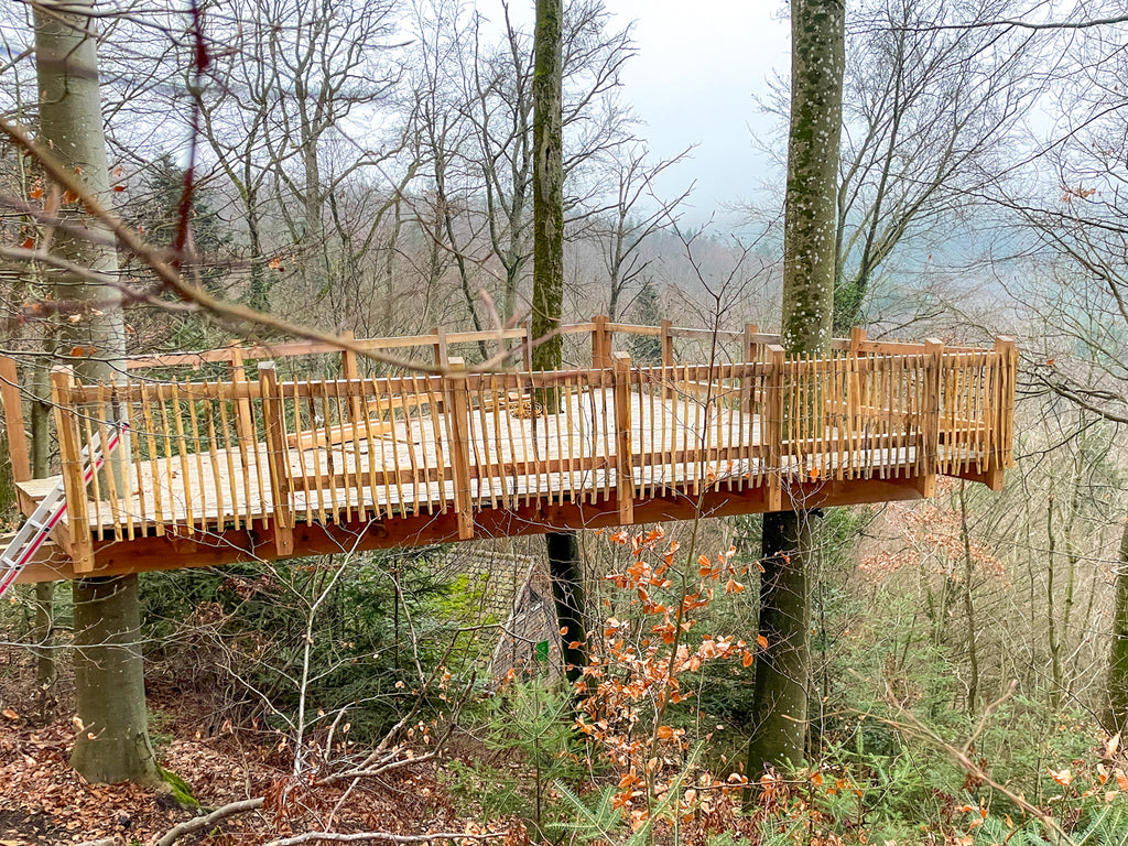 Eksempel 3: Tungt luksuriøst trehus med 40 m² plattform i et krokete eiketre