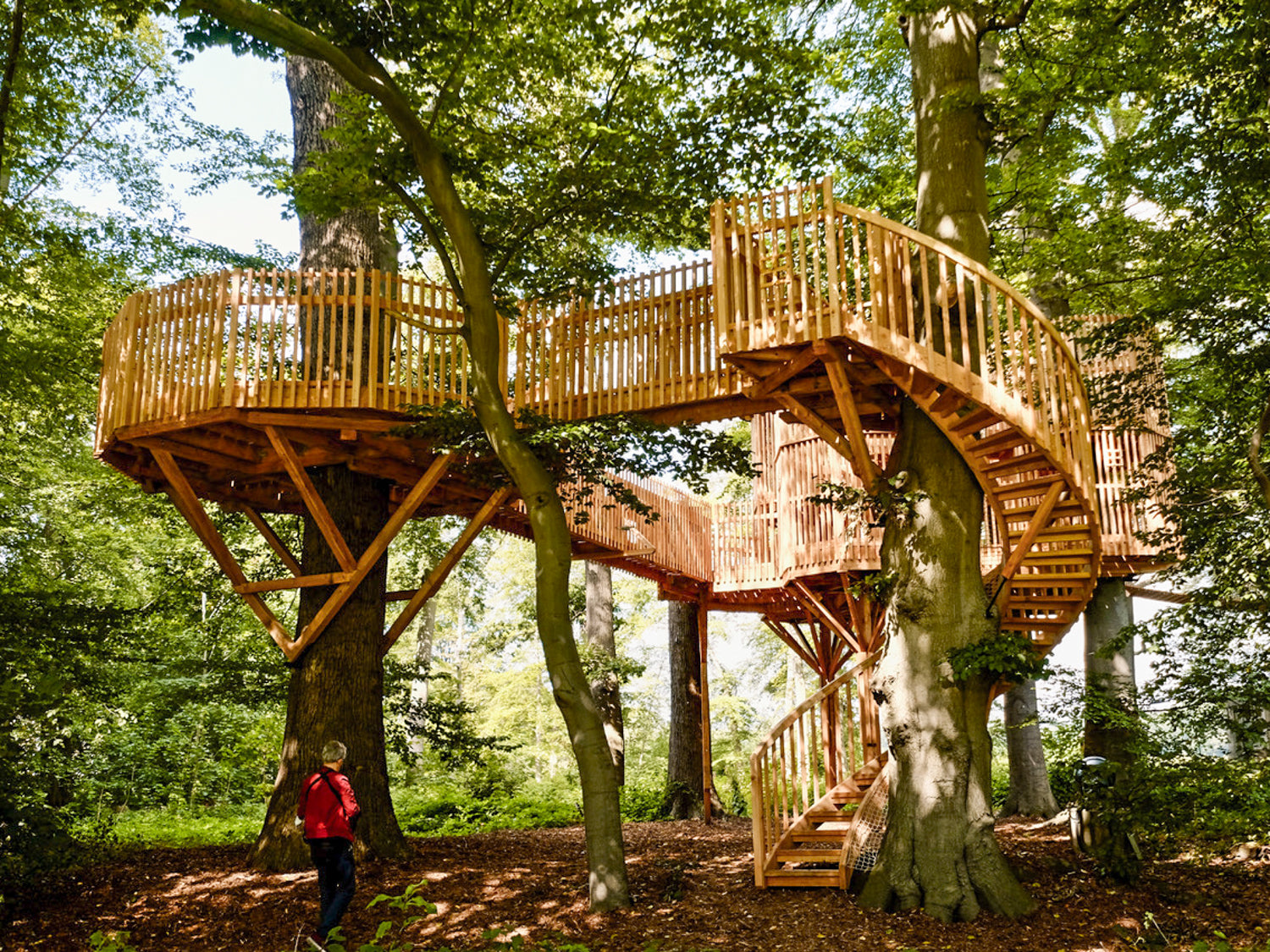 If the tree is too close to the neighbour's property or if the treehouse is to be built in a specific direction, stilts are an excellent solution as they offer maximum design freedom for the platform.