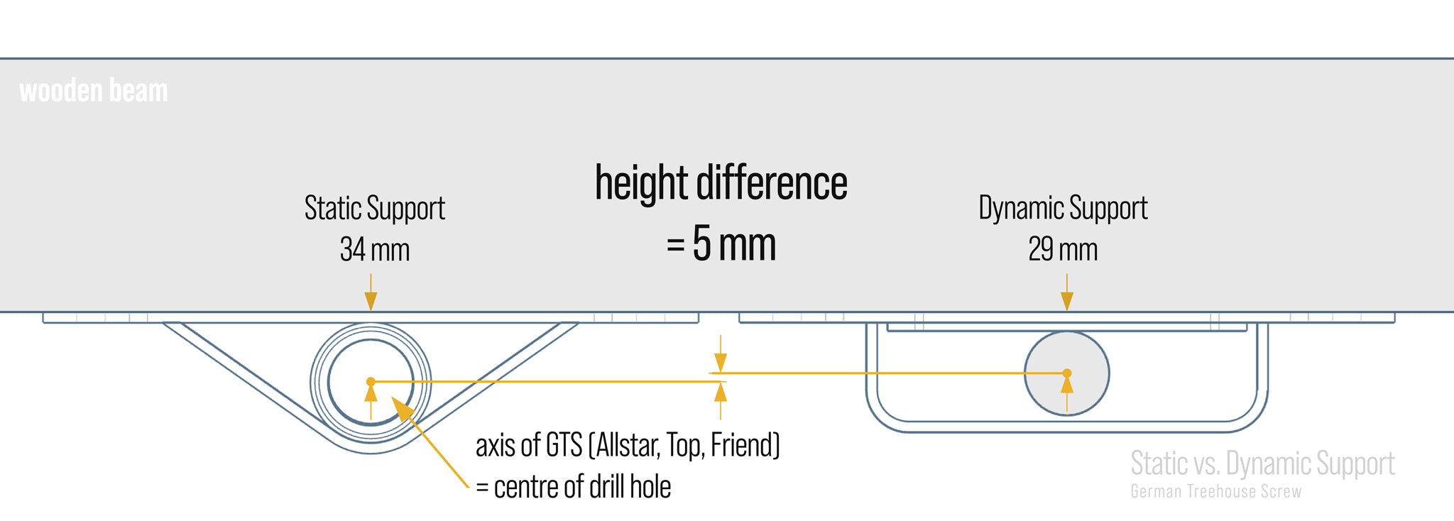 ✔ For høy belastning og mykt treverk (f.eks. gran, edelgran): Bjelke så nær treet som mulig – hold vektarmen kort!