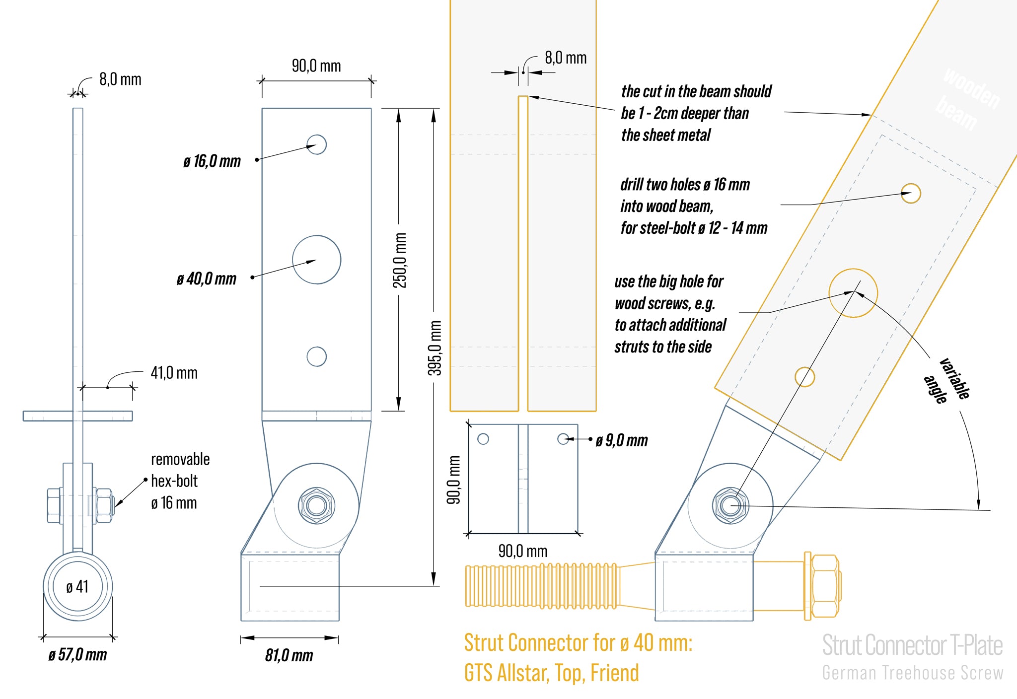 Hvis en brakett belastes langt utover, oppstår det strekk- og utvekslingskrefter på den øvre GTS-siden . Et motlager er nødvendig for å eliminere disse kreftene. Derfor må braketter alltid monteres parvis og motsatt hverandre på stammen – dette er den eneste måten å sikre maksimal bæreevne og sikkerhet på.
