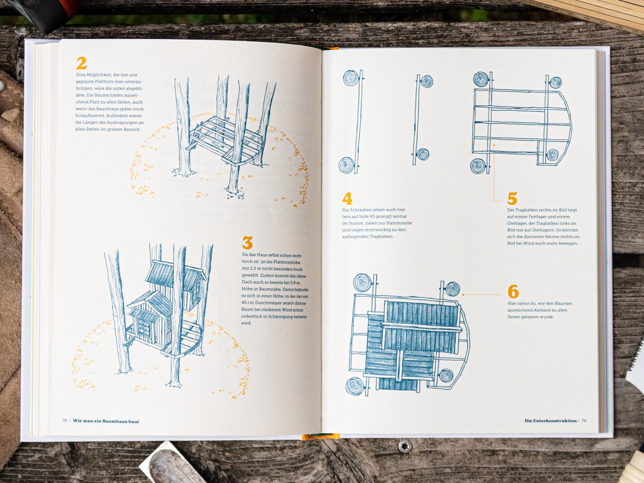 Im Buch "Wie man ein Baumhaus baut", findest du die perfekte Anleitung für den Bau eines Baumhauses mit Baum und Stelzen.